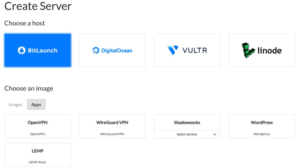 BitLaunch is a platform that allows users to deploy cloud VPS servers from major providers such as: