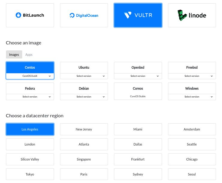 - Select your preferred provider (DigitalOcean, Vultr, Linode)
